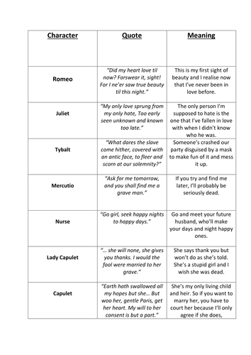 Romeo and juliet character quotes. Capulet tells Paris that Juliet is only 13. As a lover he can ignore the boundaries set by the feud between Montagues and Capulets. I have only given you three from each character so that you arent overloaded.