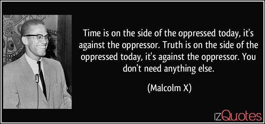 Add your answer and earn points. Download or share this Malcolm X quote with your friends on facebook linkedin whatsapp twitter and on other social media. Truth is on the side of the oppressed.