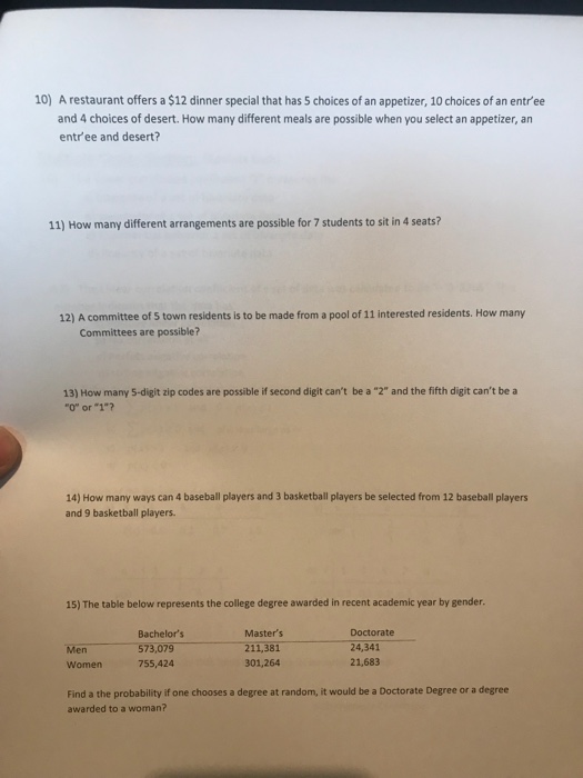Realty A realtor uses a lock box to store the keys for a house that is for saleThe access code for the lock box consists of four. A restaurant offers a 12 dinner special that has 7 choices for an appetizer choices for an entrée and 3 choices for a dessert. A restaurant offers a 12 dinner special that has 5 choices for an appetizer 10 choices for entrees and 4 By signing up youll get.